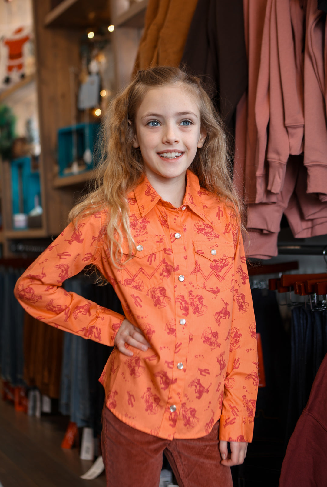 Wrangler - Girl's Cowgirl Horse Print Western Snap Shirt