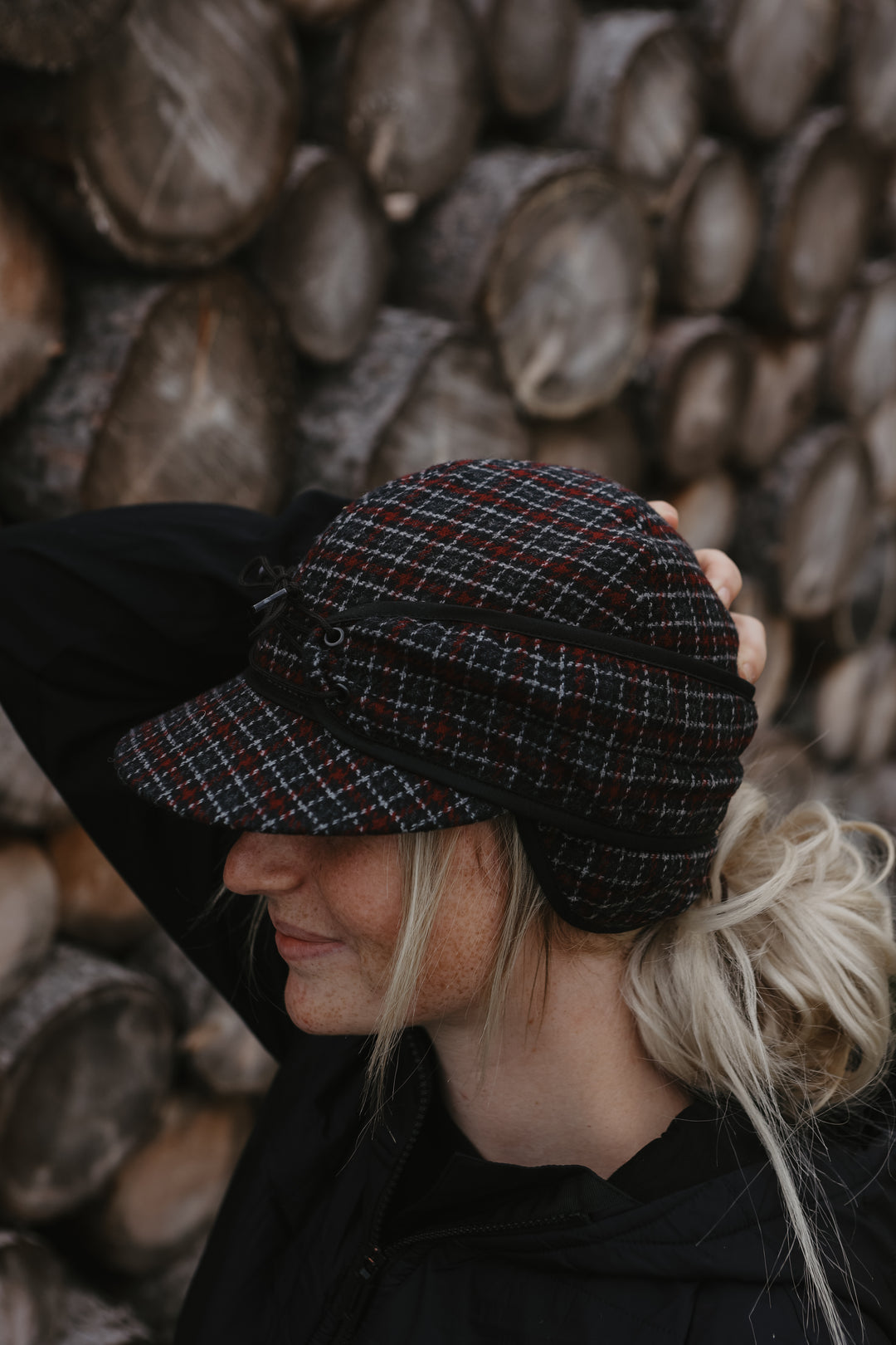 Crown Cap - Railroad Wool Plaid Cap - Black/White