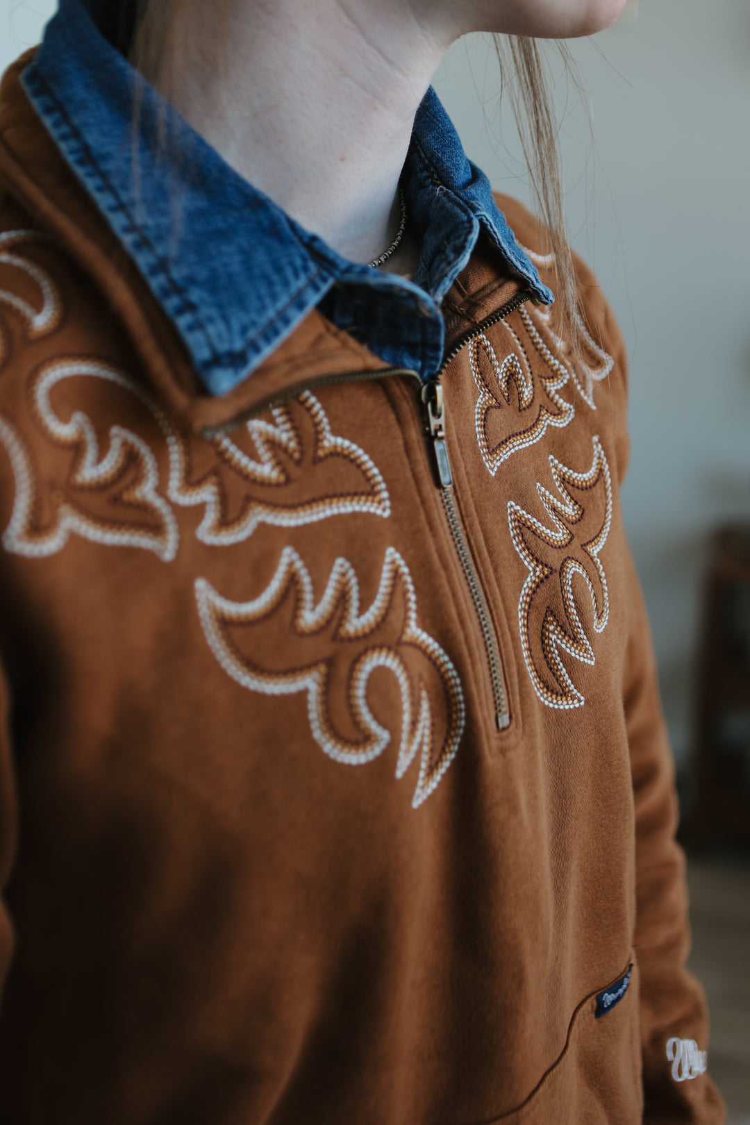 Wrangler - Women's 1/4 Zip Western Stitch Yoke Sweatshirt