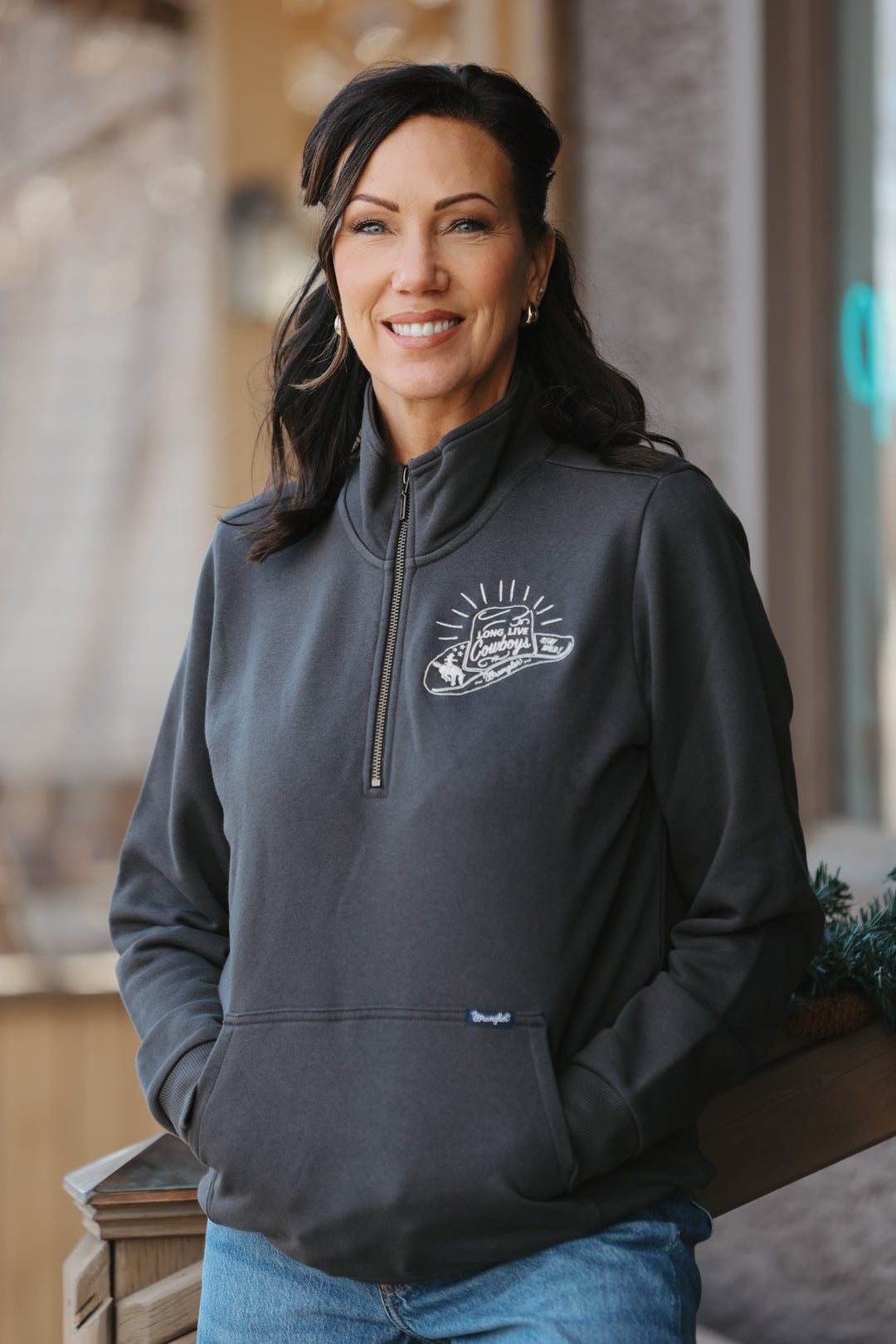 Wrangler - Women's 1/4 Zip Long Live Cowboys Pullover