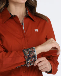 Elevate your fall wardrobe with a solid red cotton-spandex plain weave like this one crafted by CINCH. Designed to stand out in the saddle, at the ranch, or out on the town, this classic shirt features navy contrast trim, an open left front pocket, embroidered logo, and red buttons.