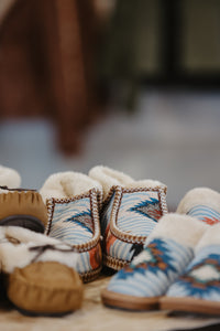 This ankle boot slipper features a 4" height with a cozy Aztec print and a pillow-soft EVA insole for gentle support. The cream faux shearling lining adds comforting warmth, while the heavy-stitched edges enhance durability.