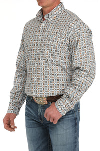 Stand out on the job site, at the office, and after hours wearing this handsome white medallion printed cotton-spandex plain weave crafted by CINCH. This stretch-friendly shirt features an open left front pocket, embroidered logo, and traditional white buttons.