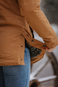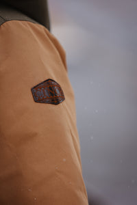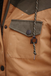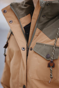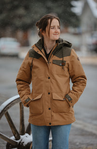 Answer the call for daily chores with Cinch's brown polyester canvas barn jacket that’s built to withstand it all. This rugged outerwear must features ¾ length color blocked polyester construction with a removable hood, polyester twill lining, saddle vents, a leather CINCH logo patch, and Durable Water Resistant (DWR) finish.
