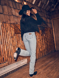 The 14MWZ women's Western jeans have a home in the closets of cowgirls across the country. Made of heavyweight broken twill denim, our women's Cowboy Cut® jeans are designed for comfort and durability in competition, daily chores, and everyday life. These women's jeans come fully equipped with all the iconic features you know and love, including a rope logo patch, gold rivets, 7 belt loops, and a riser label. Best of all, this go-to jean features a super high rise that sits at the natural waist and a tapered leg that fits perfectly over cowgirl boots.